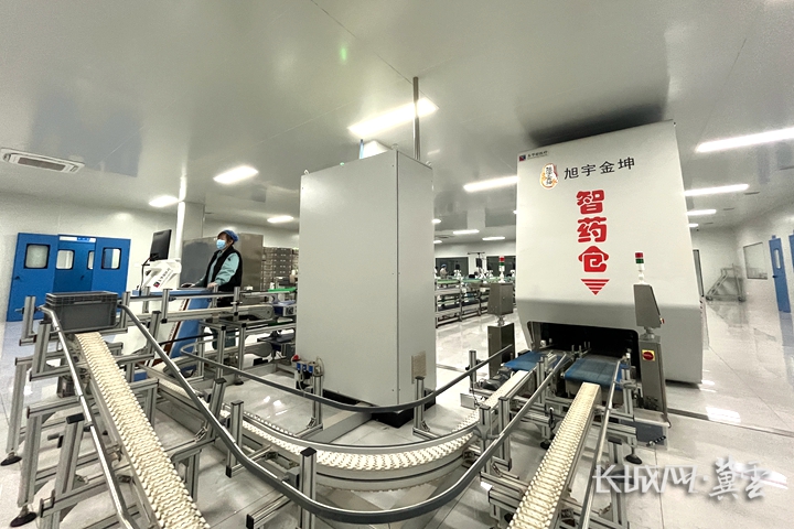 河北旭宇金坤藥業(yè)有限公司智慧中藥煎煮生產(chǎn)線的智藥倉(cāng)。長(zhǎng)城網(wǎng)·冀云客戶端記者 宋建軍 攝